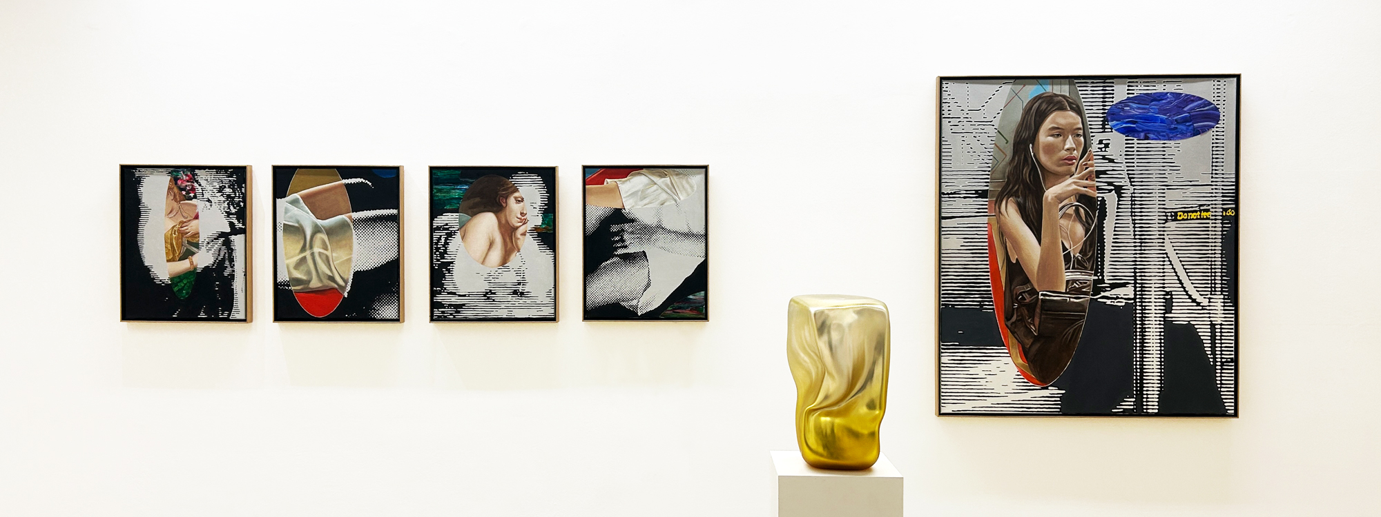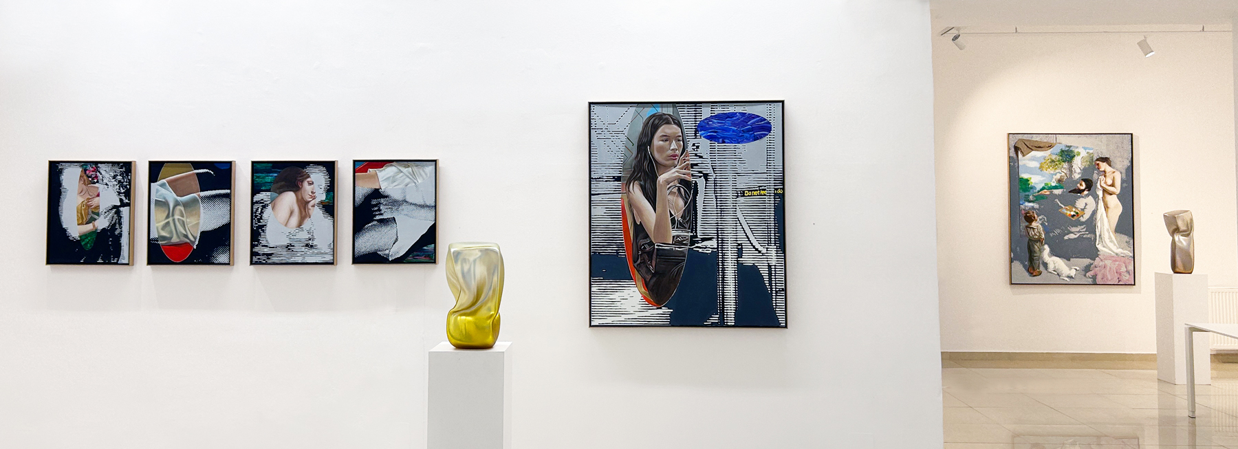 In Martin Praskas aktueller Serie, verbindet der Künstler Anklänge an klassische Meisterwerke mit einer frischen, zeitgenössischen Handschrift. Seine Figuren, oft weibliche Körper, erscheinen zwischen Geschichte und Gegenwart, eingebettet in zarte, abstrahierte Farbräume.